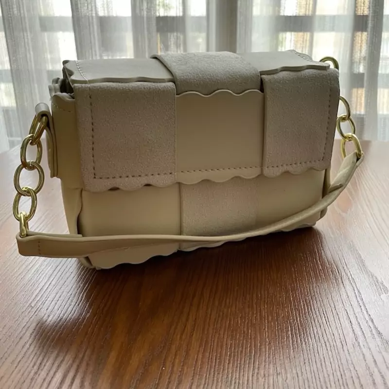 کیف شطرنجی، ترکیب چرم و جیر، هم بند دستی داره هم بند بلند، یه سرکلیدی جذاب هم داره