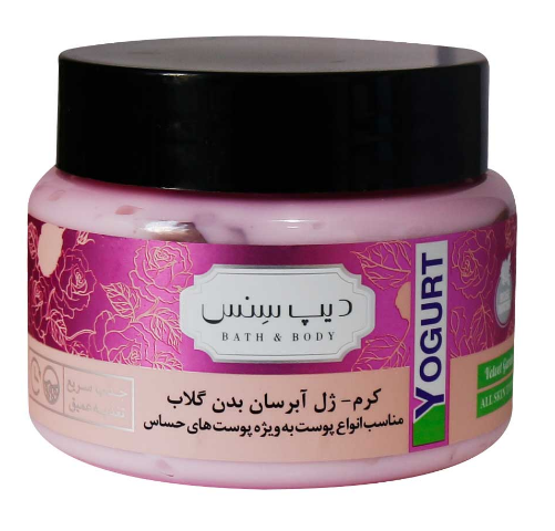 ماست بدن (کرم ژل آبرسان بدن) گلاب دیپ سنس مناسب انواع پوست حجم 250 میلی لیتر