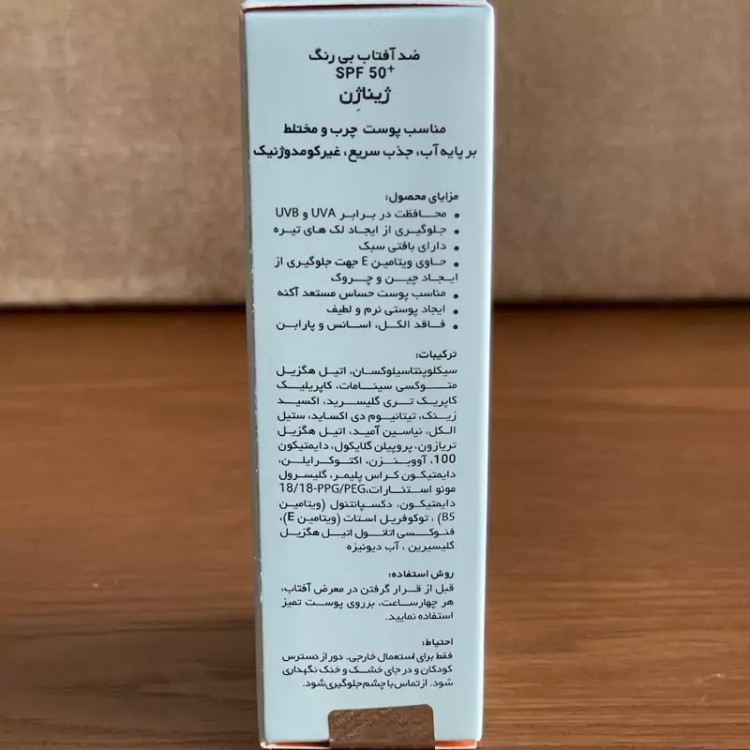 ضدآفتاب بی رنگ پوست چرب و مختلط spf50 ژیناژن