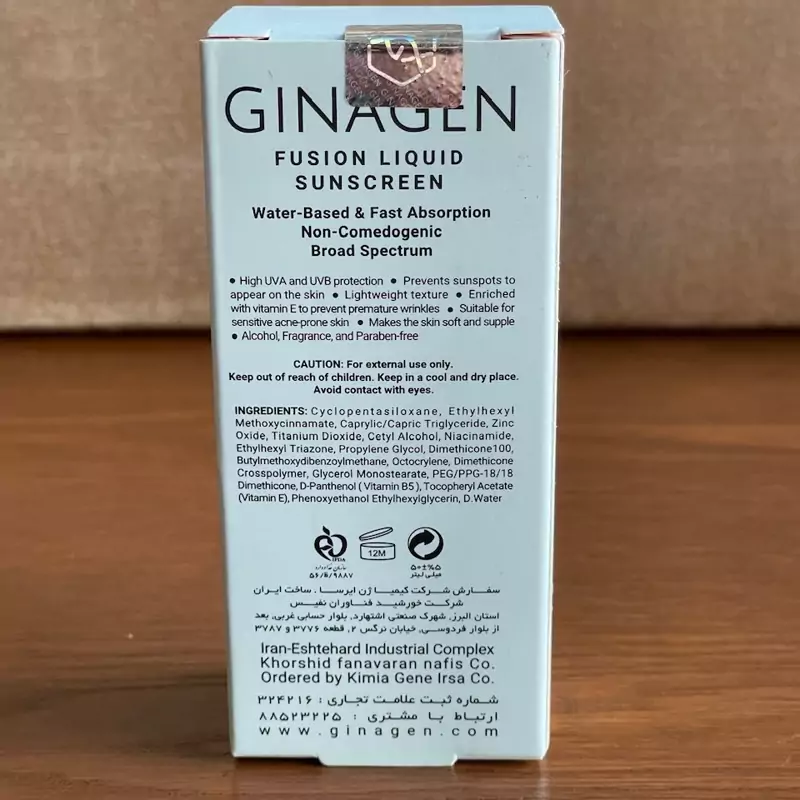 ضدآفتاب بی رنگ پوست چرب و مختلط spf50 ژیناژن