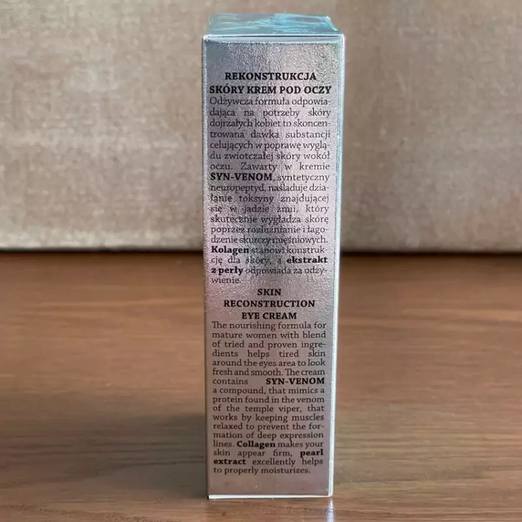 حاوی کلاژن،سم مار و مروارید،رفع چین و چروک و خطوط پوستی،ترمیم کننده، ریلکس کننده و رفع خشکی پوست،تغذیه رسانی و تامین رطوبت پوست،کلاژن سازی و افزایش خاصیت کشسانی،بازسازی عمیق و رفع سریع عوارض پیری،روشن کننده، ضدلک ملایم،رفع سیاهی و گودی و افتادگی زیرچشم