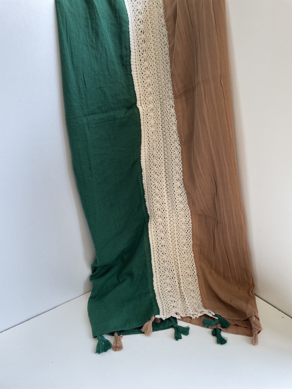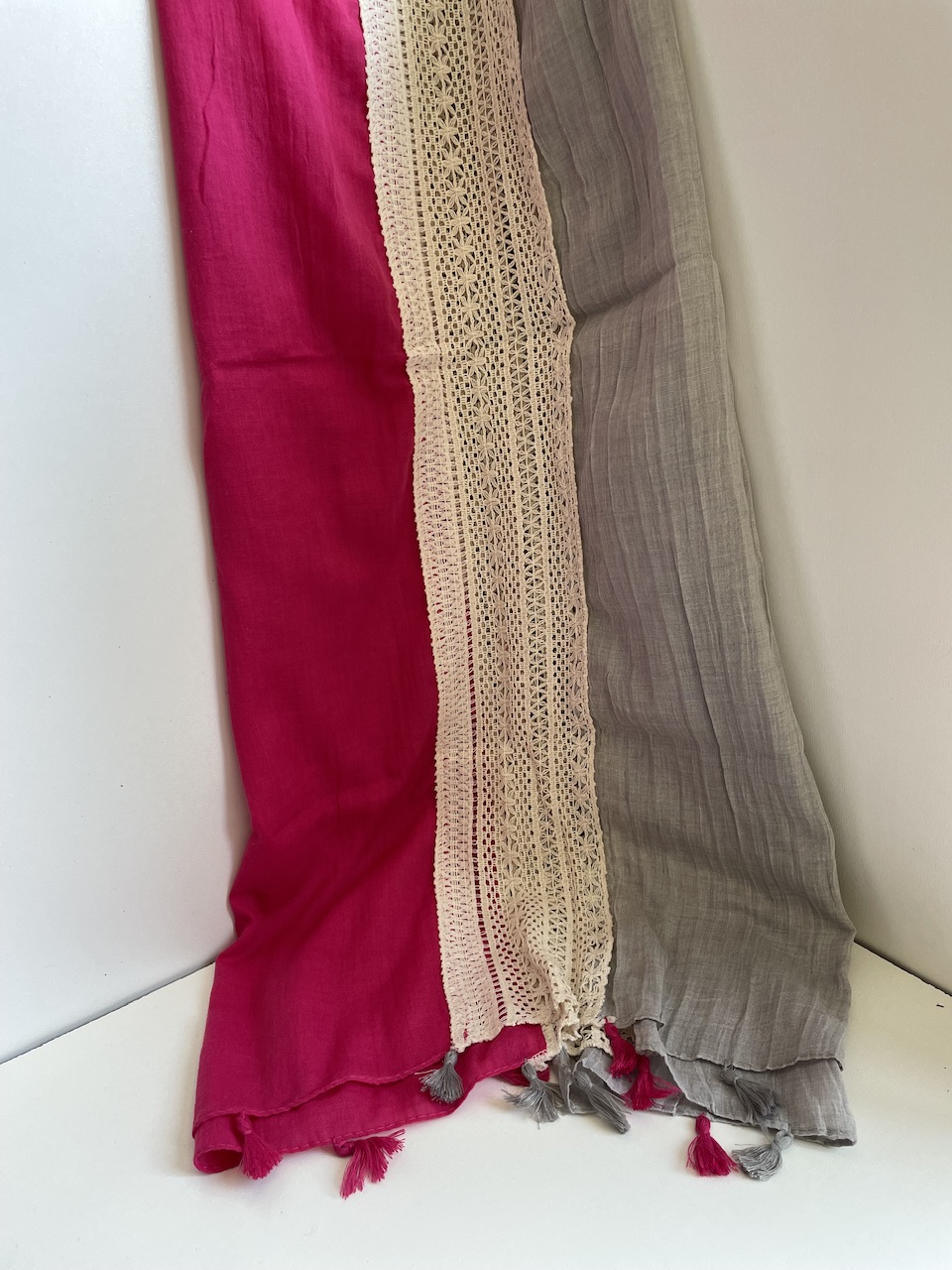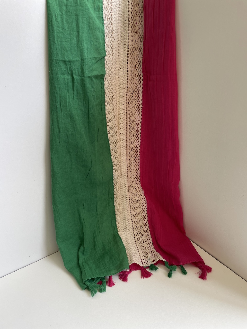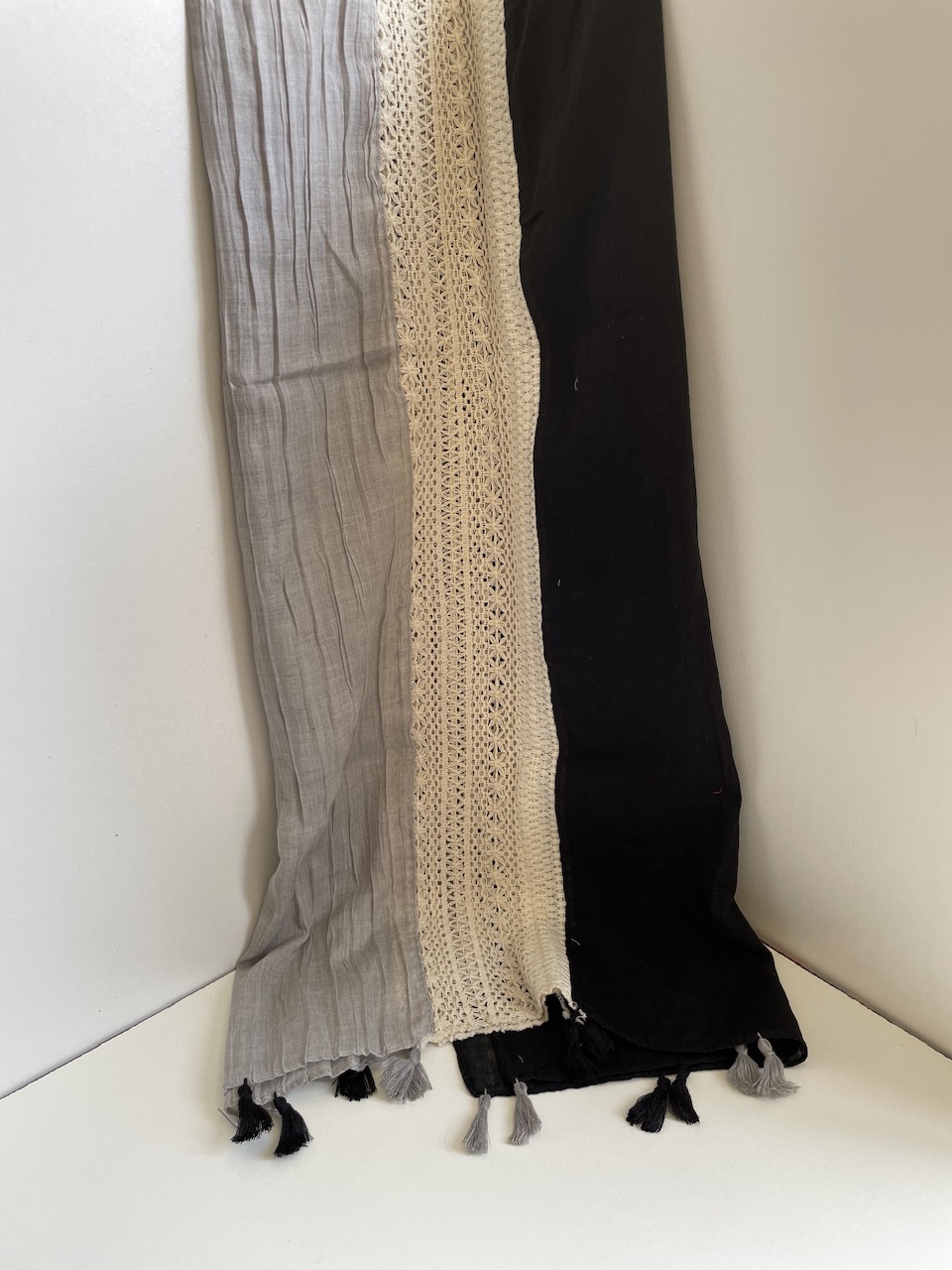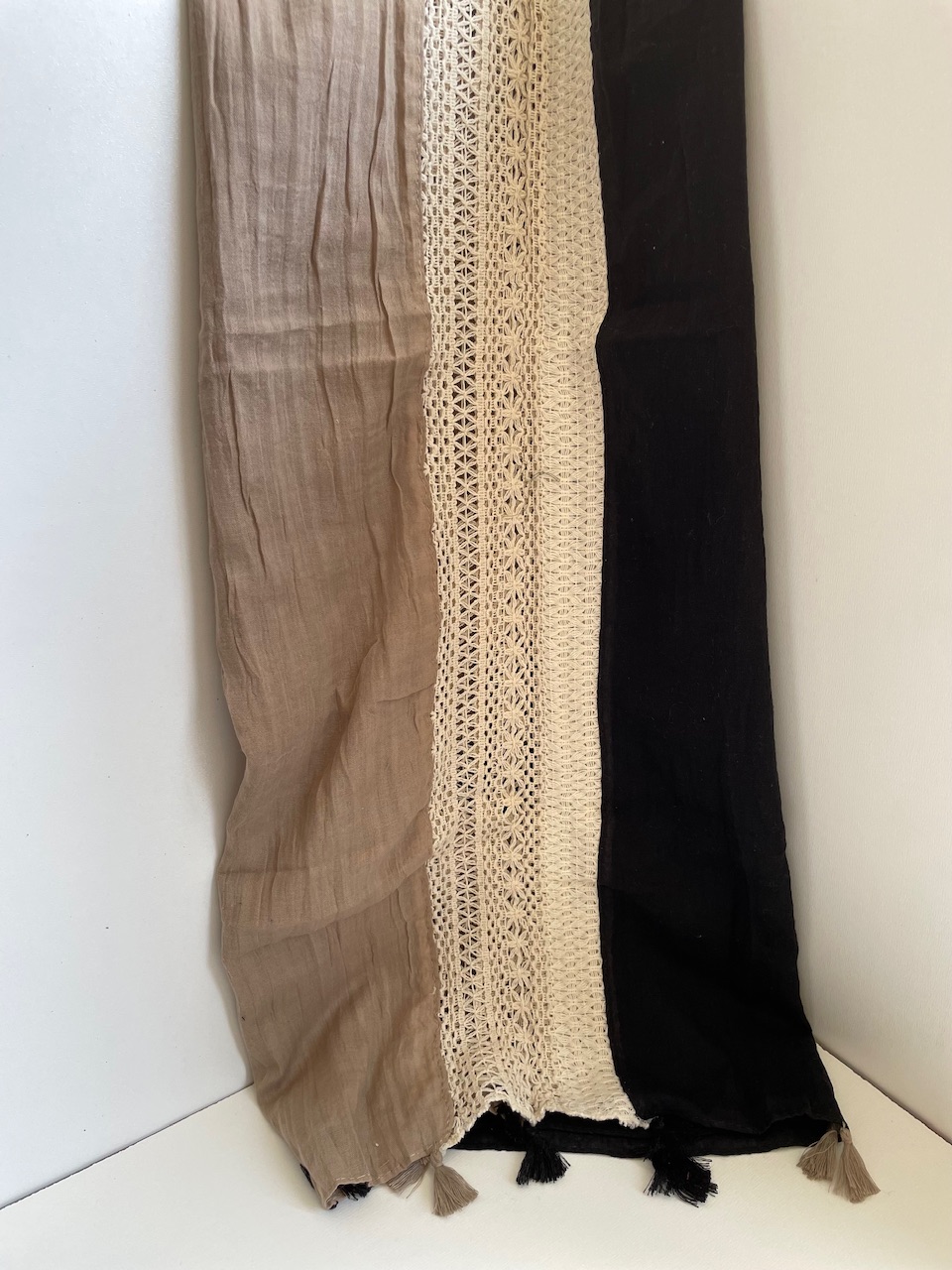 شال نخی دو رنگ با نوار کنفی