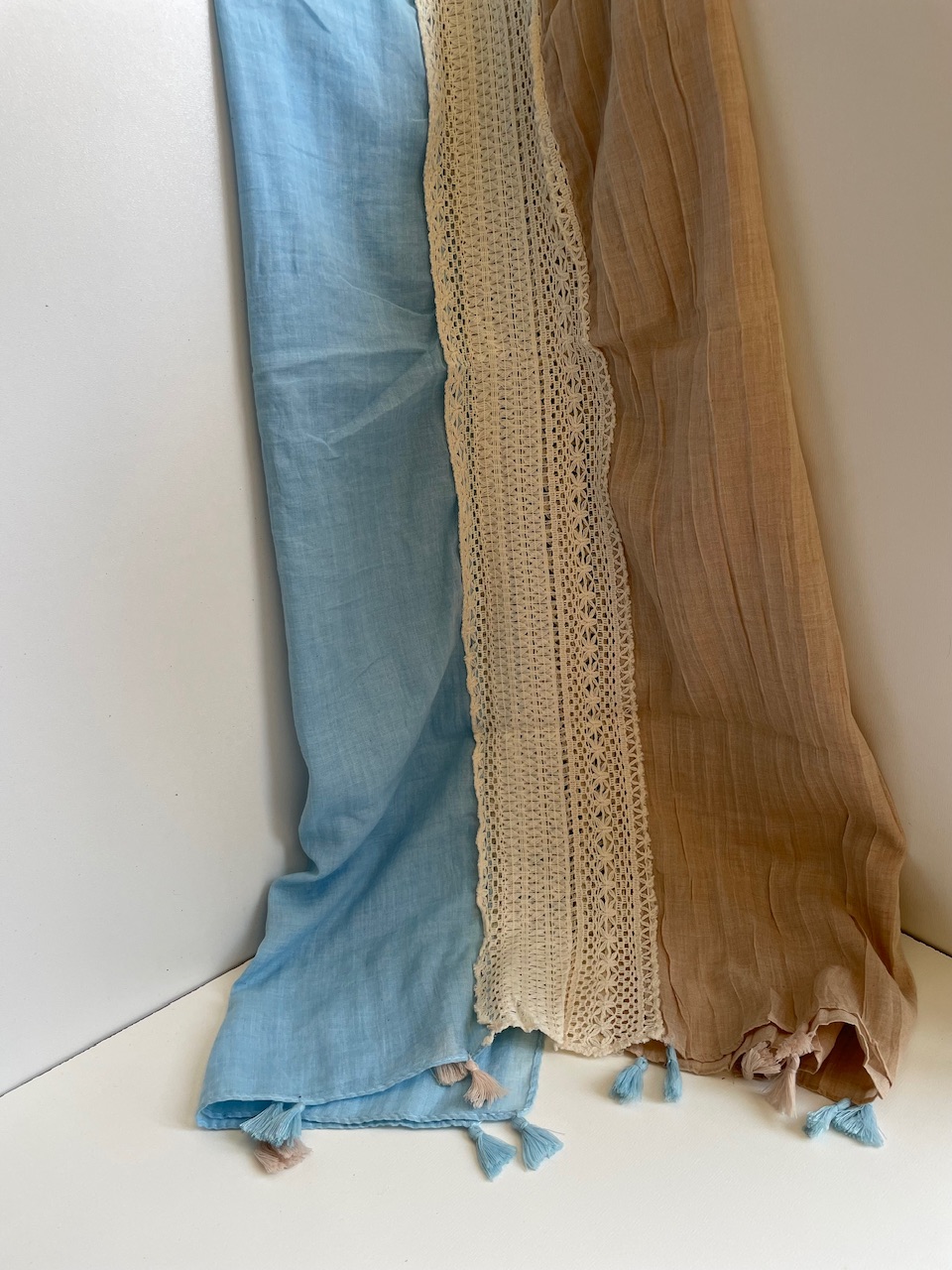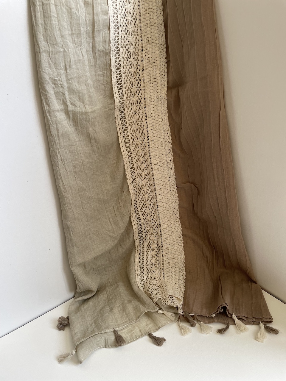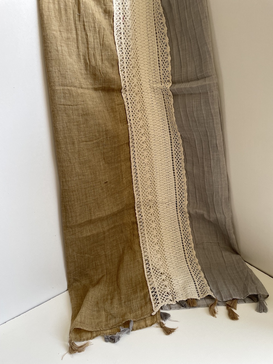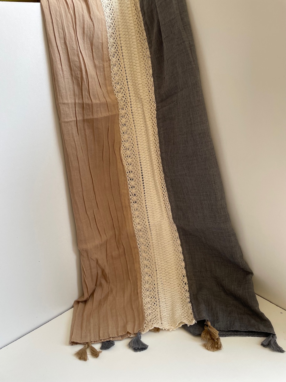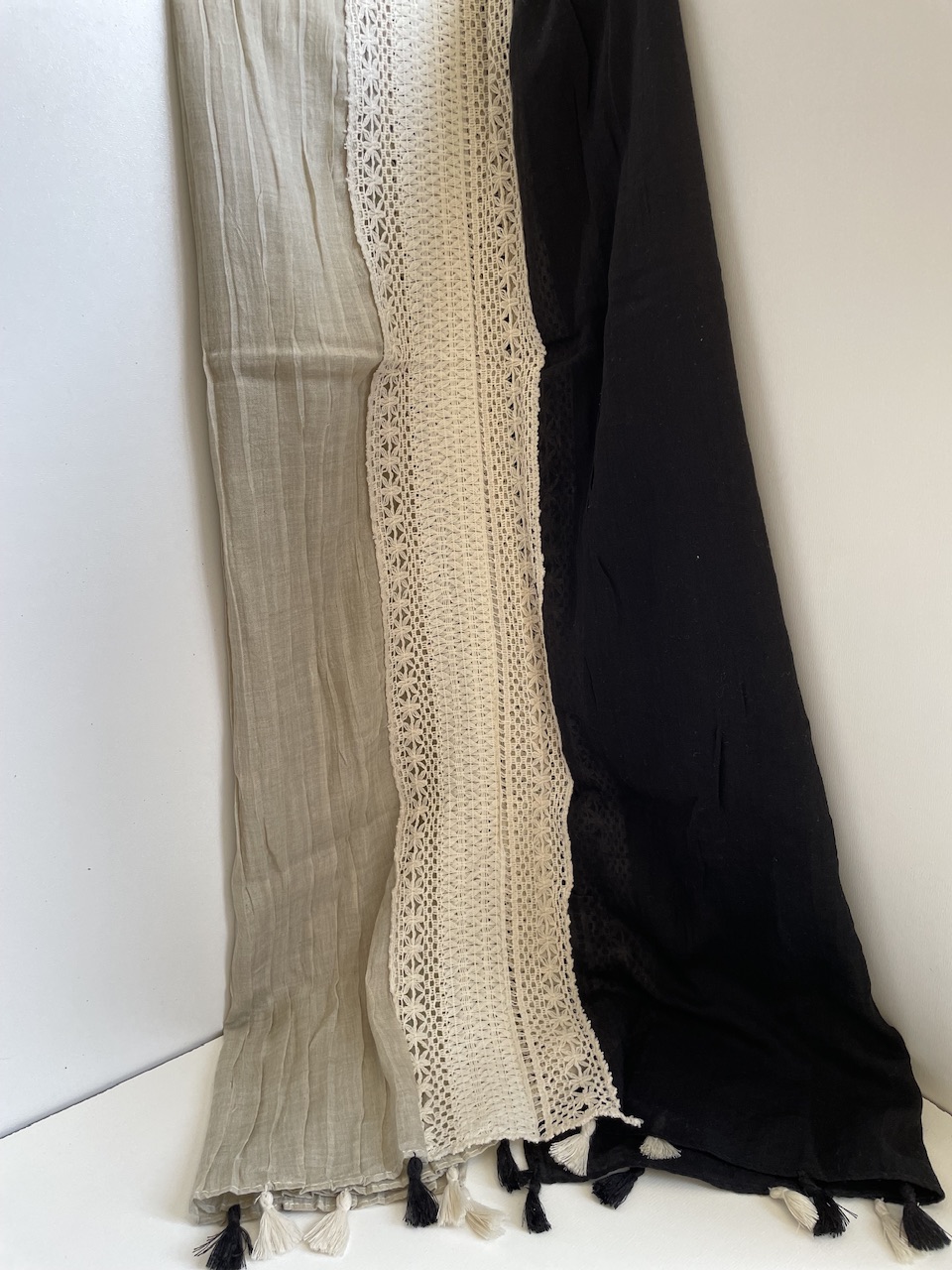 شال نخی دو رنگ با نوار کنفی